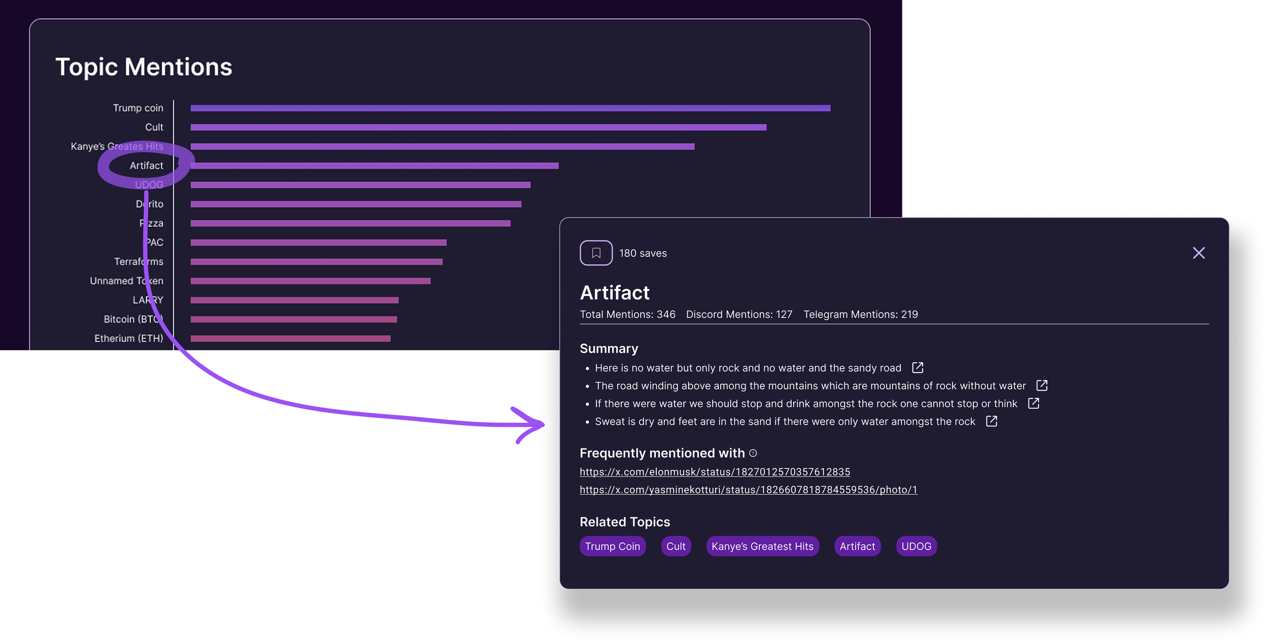 To save a topic from a specific time period, users can click on the bookmark icon on any topic modal.